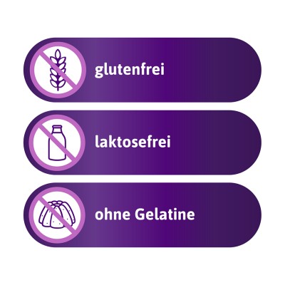 Gluten-free, lactose-free, without beef or pork gelatine