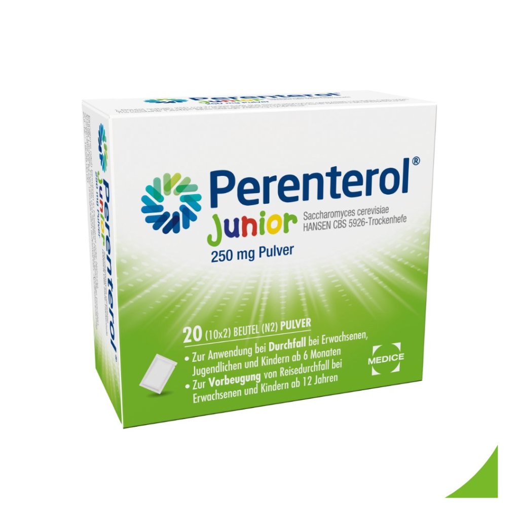 Perenterol ® Junior 250 mg has proven effective in diarrhea. The natural active ingredient S. boulardii (medicinal yeast) is well tolerated and helps effectively against diarrhea without impairing the natural intestinal activity. It binds the diarrhea pathogens and excretes them. The regeneration of the intestinal flora is also supported and further fluid loss is prevented.