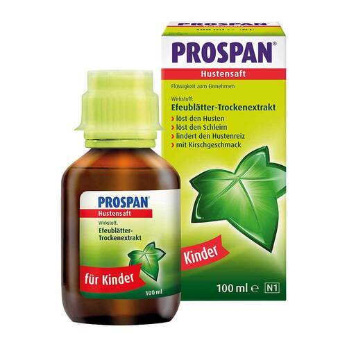 PROSPAN® cough syrup, liquid e.g. Take in Active ingredient: ivy leaf dry extract. Areas of application: To improve the complaints. b. chronic inflammatory bronchial disease.; acute inflammation of the respiratory tract with the accompanying certificate. Cough. Note: In the case of prolonged complaints or if you develop shortness of breath, fever or purulent or bloody sputum, contact your doctor immediately. For risks and side effects, read the leaflet and ask your doctor or pharmacist. Status: 09/2021. Engelhard Arzneimittel GmbH & Co.KG, Herzbergstr. 3, 61138 Niederdorfelden