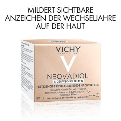 - • The revitalizing NEOVADIOL night cream from Vichy was dermatologically tested on menopausal women with sensitive skin.