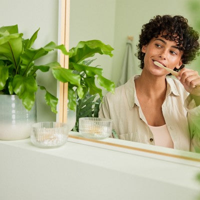 Apply 2 cm of Weleda Sole toothpaste to the dry toothbrush and clean the teeth and gums with small, circular movements.