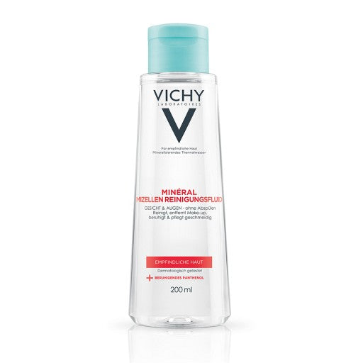 - Minéral Mizellenreinigungsfluid für empfindliche Haut ist mit vulkanischem Wasser aus VICHY und beruhigendem Panthenol angereichert